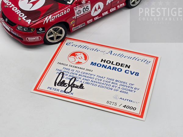 AUTOart 2003 Holden Monaro CV8 Targa Tasmania *Signed COA by Brock* 1:18 - Preowned